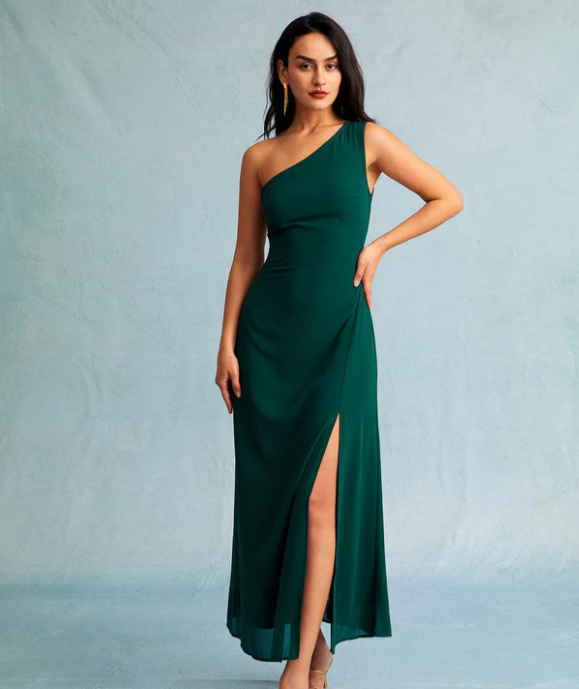 - The Pick: Wine Red Satin One Shoulder Maxi Dress ($45)
